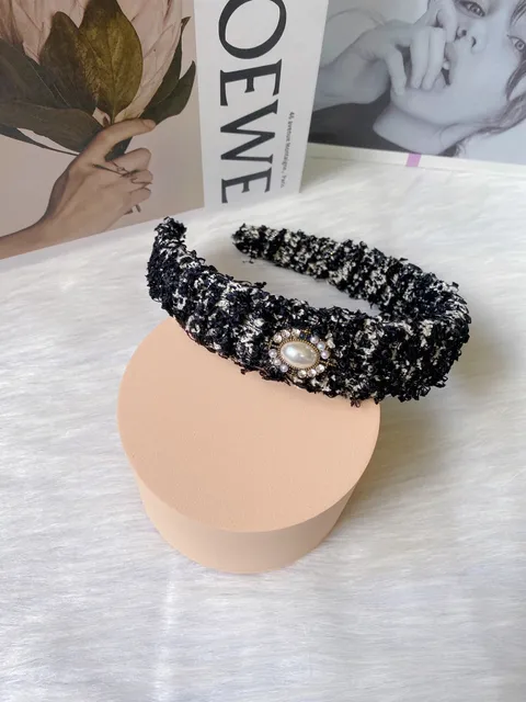 Premium Tweed Headband with Pearl and Crystal